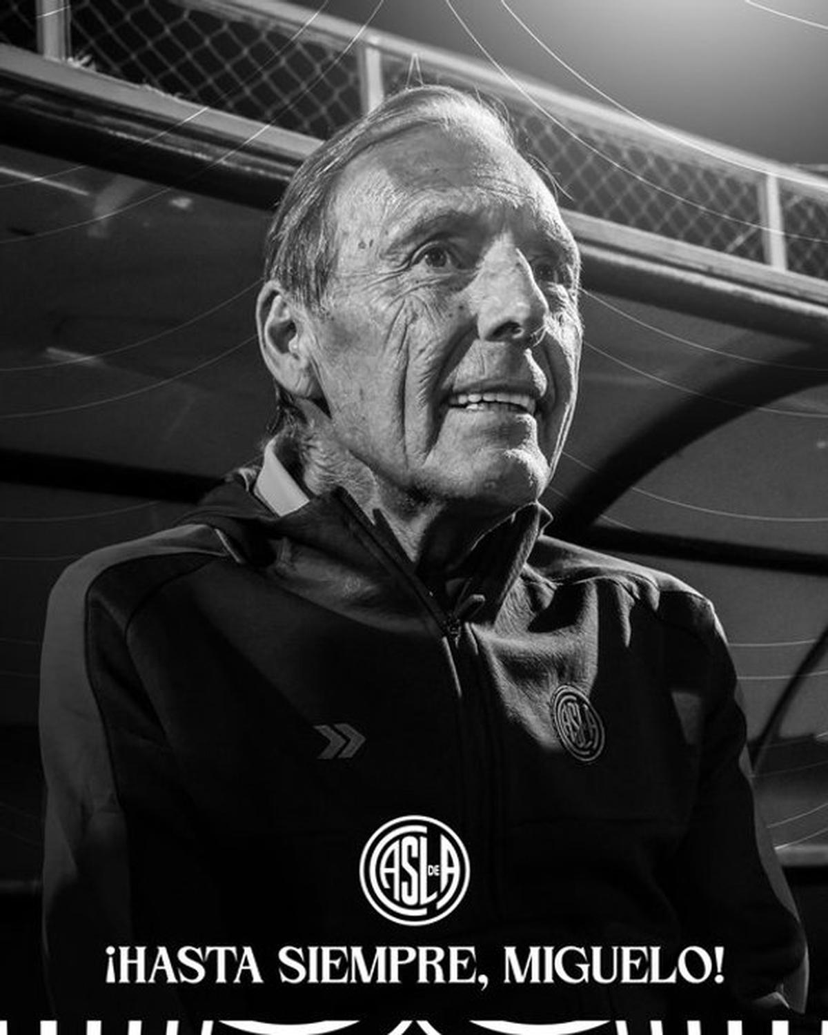 "San Lorenzo lamenta profundamente el fallecimiento de Miguel Ángel Russo, quien dirigió al Club en dos oportunidades y es una leyenda del fútbol argentino. Acompañamos a su familia y seres queridos en este momento tan triste. ¡Hasta siempre, Miguelo!", escribió el elenco de Boedo en redes sociales junto a una imagen del ex mediocampista con el buzo del club.
