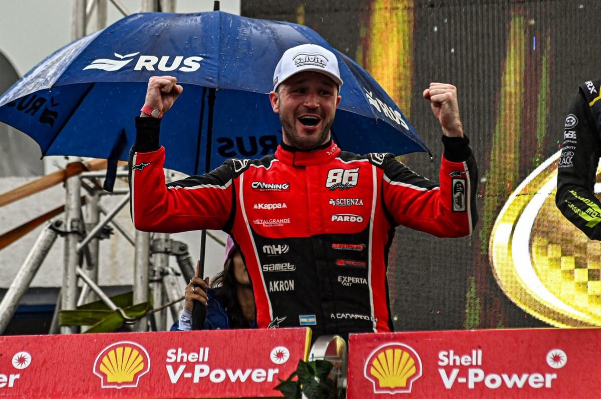 Pero Canapino volvió con premura y calidad, sostuvo el coche en la pista y por momentos era el único. Todos los demás estaban fuera de la pista. Tanto, que cruzó la meta y la bandera de cuadros y solo Ebarlín venía en la pista medio circuito detrás.