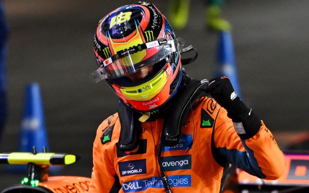 Oscar Piastri de McLaren suma otro hito en el fin de semana del Gran Premio de Catar de Fórmula1, tras marcar la 'pole position' que lo pone al frente de la grilla de la carrera de 57 vueltas, que comienza mañana a las 13 horas de nuestro país. Sus dos rivales por el campeonato fueron sus escoltas: el líder y compañero de equipo Lando Norris (+0.108s) y Max Verstappen (+0.264s) de Red Bull.
