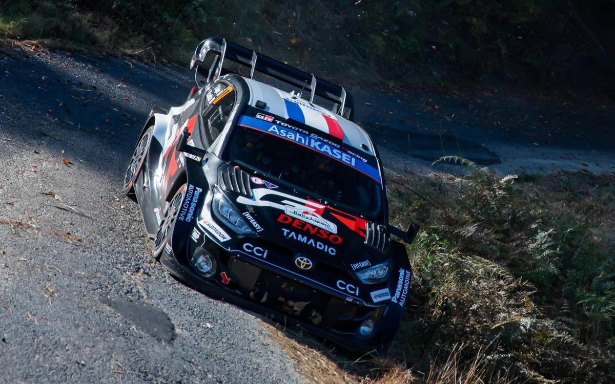 El 8 veces campeón ganó 3 tramos pero solo tiene una ventaja de 7,9s sobre su compañero Katsuta. El líder del WRC, Evans, es 3° a 2,3s, venciendo en el último tramo. Rovanperä chocó y es 17° a 5'.