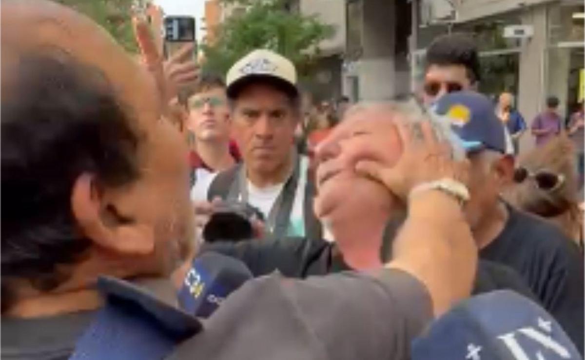 Mientras estaba hablando, un militante libertario se acercó, lo insultó y le pegó en la cara.