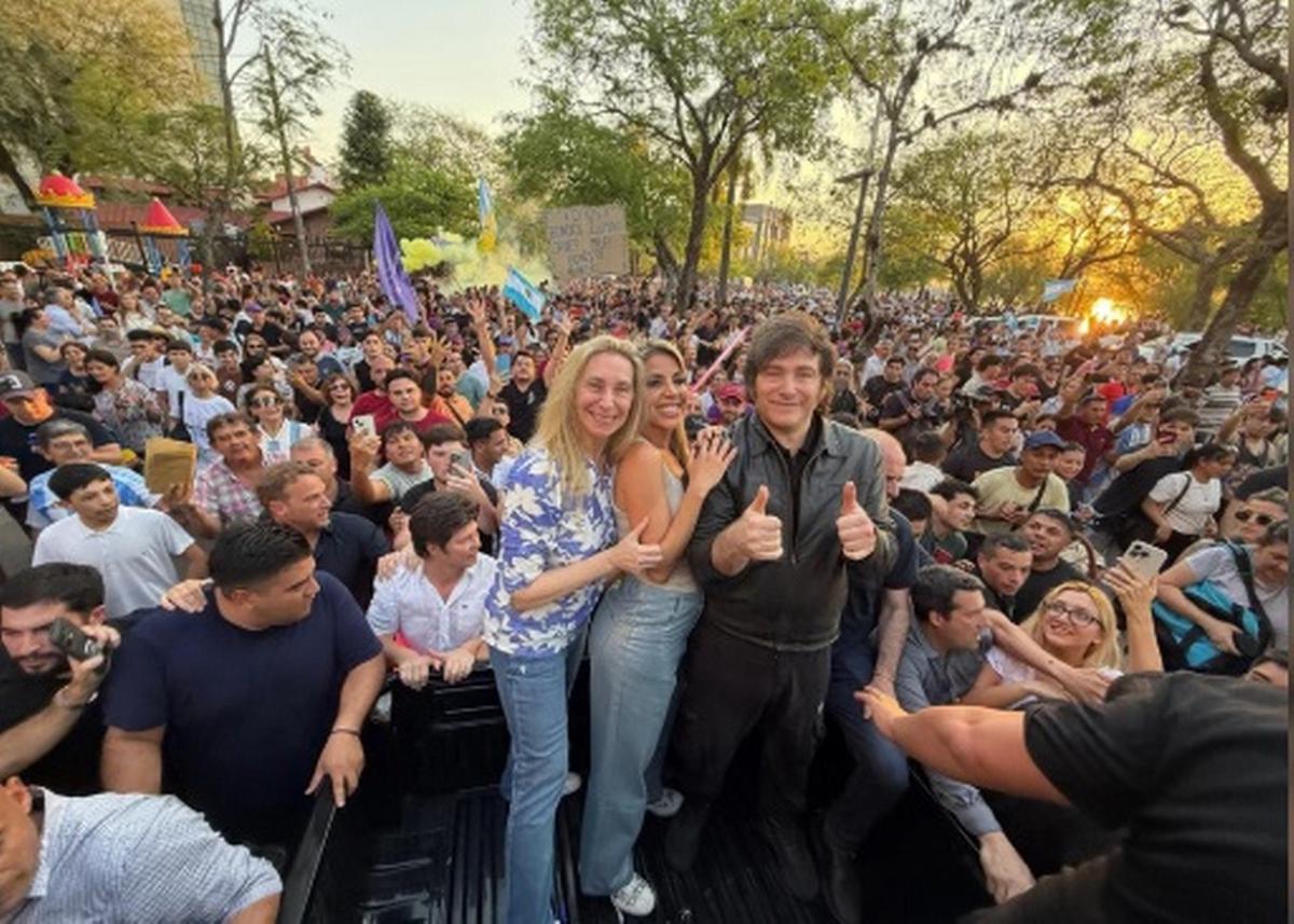 El mandatario estuvo acompañado por su hermana y secretaria general de la Presidencia, Karina Milei, y por la candidata a diputada nacional, la exvedette Virginia Gallardo.