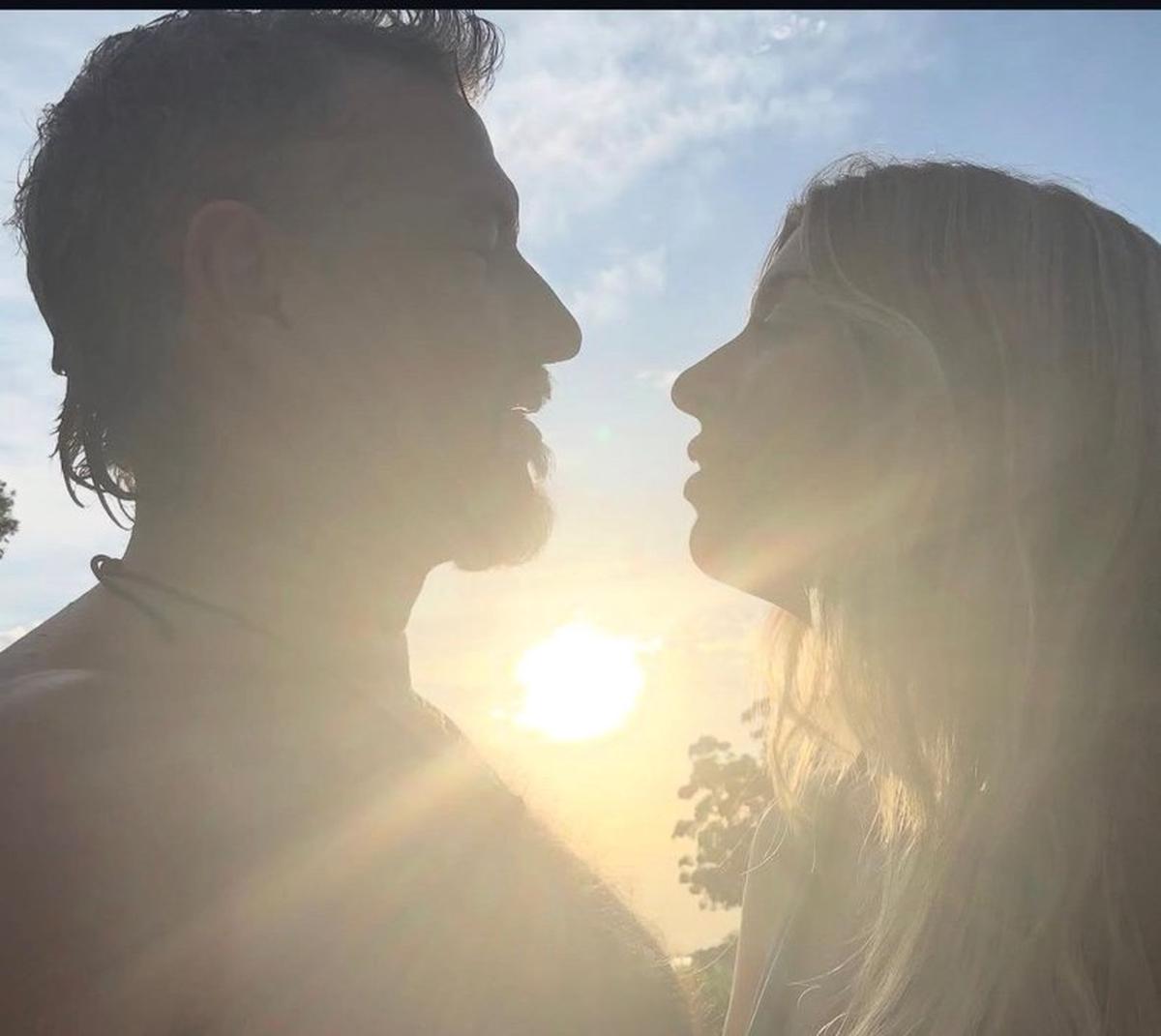 En las fotos se los ve abrazados, riendo y disfrutando de momentos compartidos, desde un paseo al aire libre hasta una cena casera donde él sostiene una pizza recién salida del horno. La secuencia de imágenes transmite cercanía, humor y amor genuino.