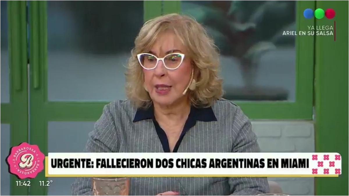 Según supo Noticias Argentinas, Barbarossa interrumpió su programa en Telefe para dar la "noticia tremenda, espantosa". "Ustedes saben que toda la televisión conoce a la familia Yankelevich porque decir Yankelevich es sinónimo de televisión", comenzó, antes de confirmar el fallecimiento de la hija de Tomás Yankelevich en un accidente náutico en Miami.