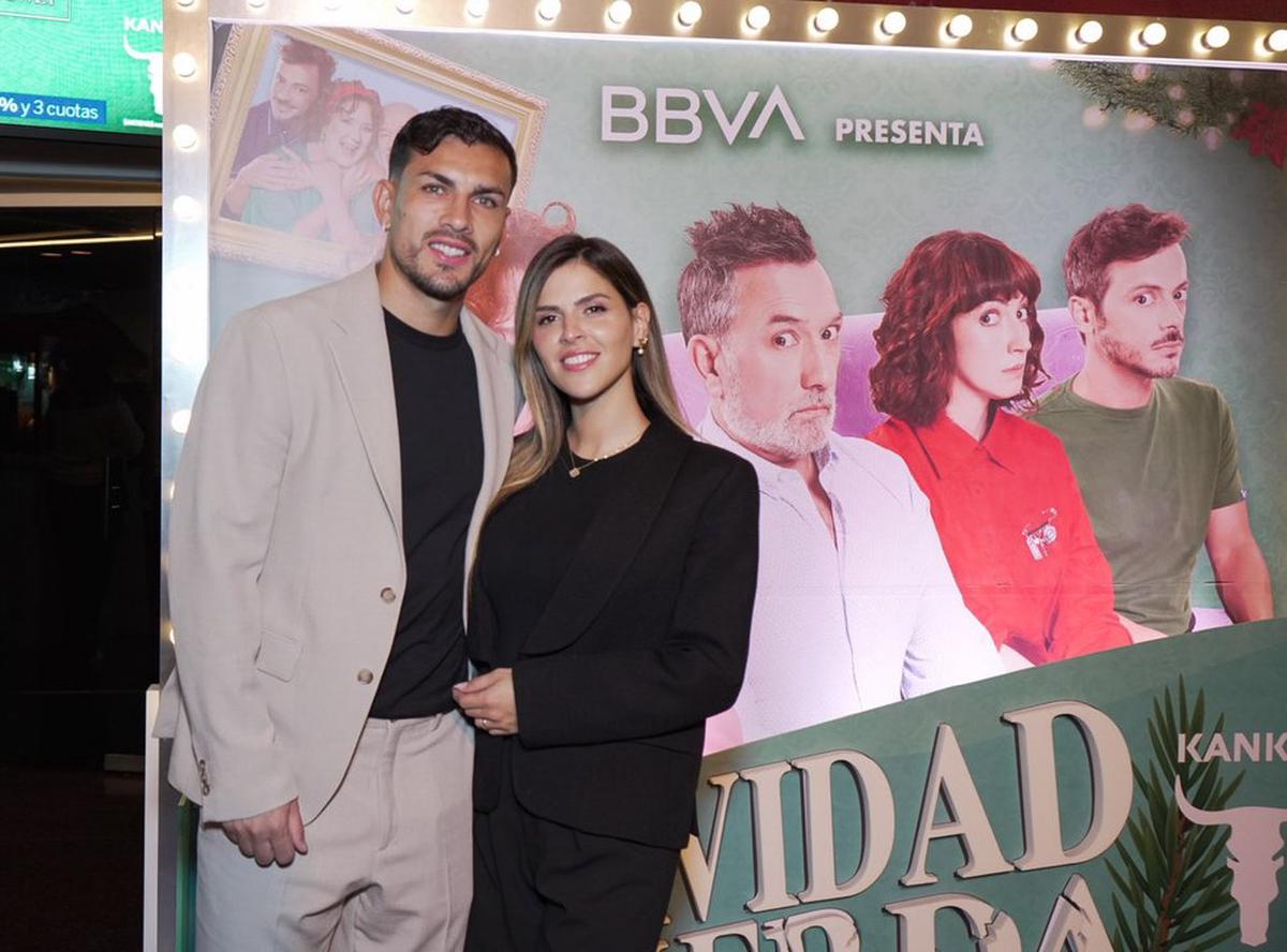 El campeón del mundo Leandro Paredes y su esposa, la empresaria e influencer Camila Galante, asistieron a la función inaugural para la prensa de la obra “Una navidad de mierda”, en el Teatro Premier, donde además fue acompañado por su amigo, también futbolista, Ander Herrera.