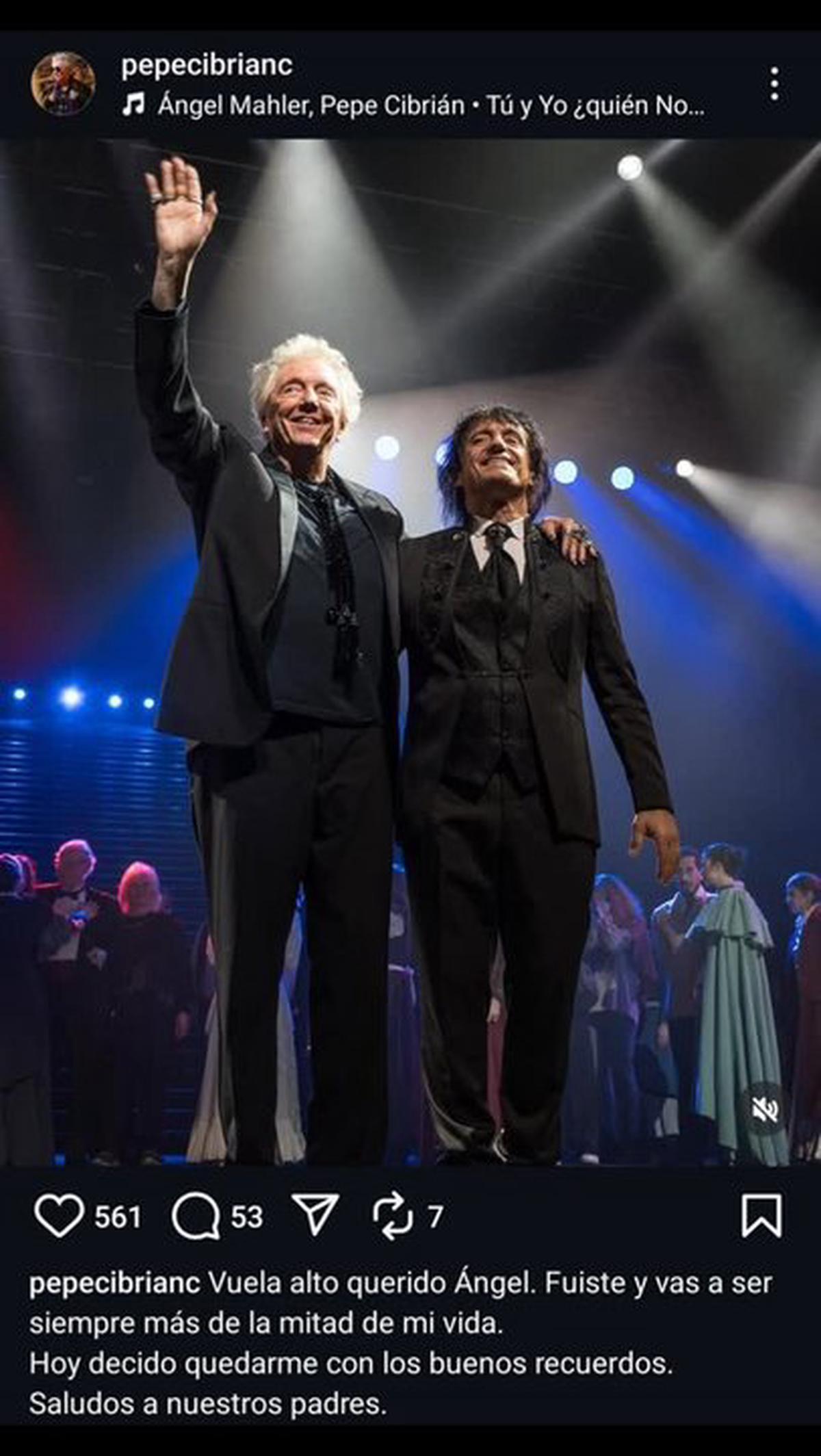 Tal como indica el dramatismo teatral de una tragedia musical situada en la época del romanticismo, Pepe Cibrián sigue adelante con una denuncia por supuesta estafa y fraude contra su ex socio, Ángel Mahler, que falleció hace cuatro meses, aunque sostiene que aún lo “ama”.