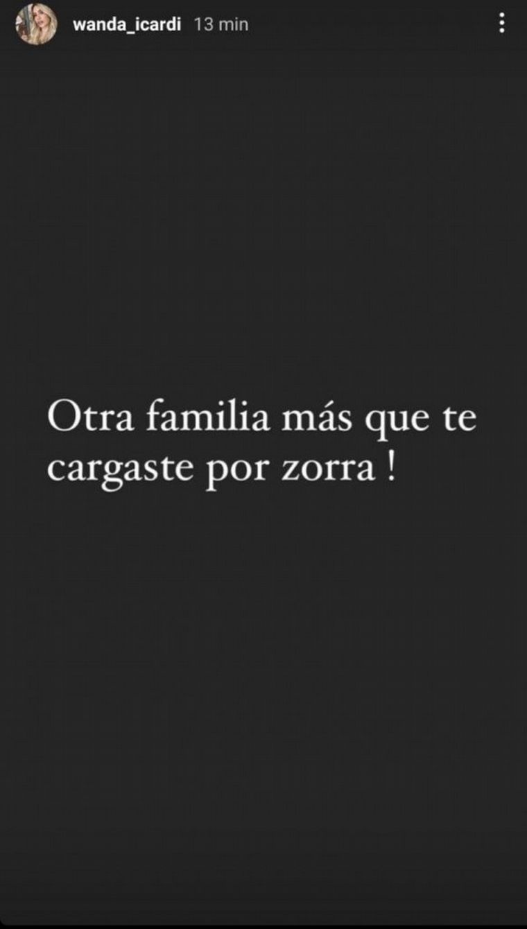 “Otra familia que te cargaste por zorra”. Con esa frase Wanda Nara le hizo saber a sus ocho millones de seguidores que algo no anda bien en su vida idílica.