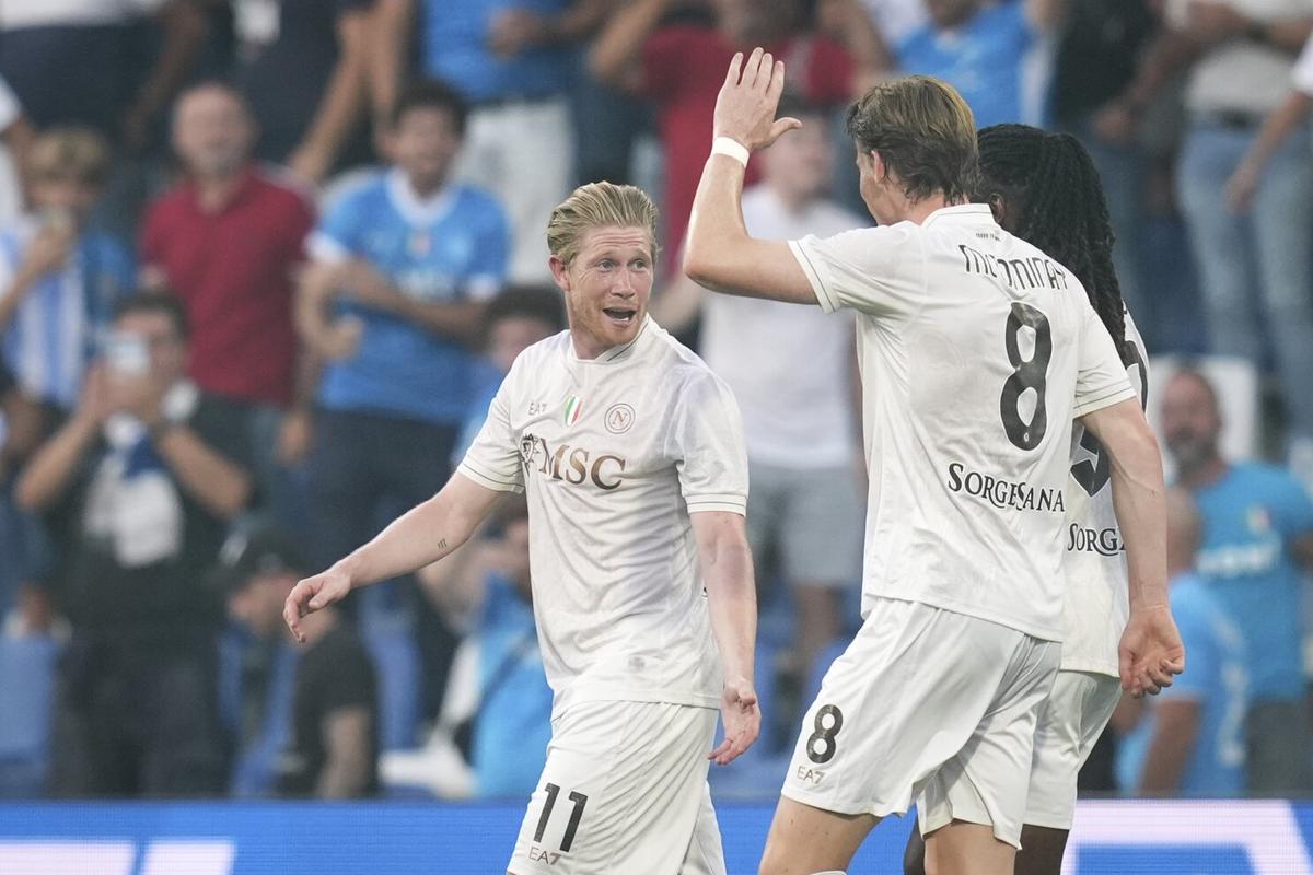 Kevin De Bruyne anotó en su debut y Scott McTominay abrió el marcador cuando el Napoli inició la defensa de su título de la Serie A con una cómoda victoria por 2-0 ante el campeón de la Serie B, Sassuolo.