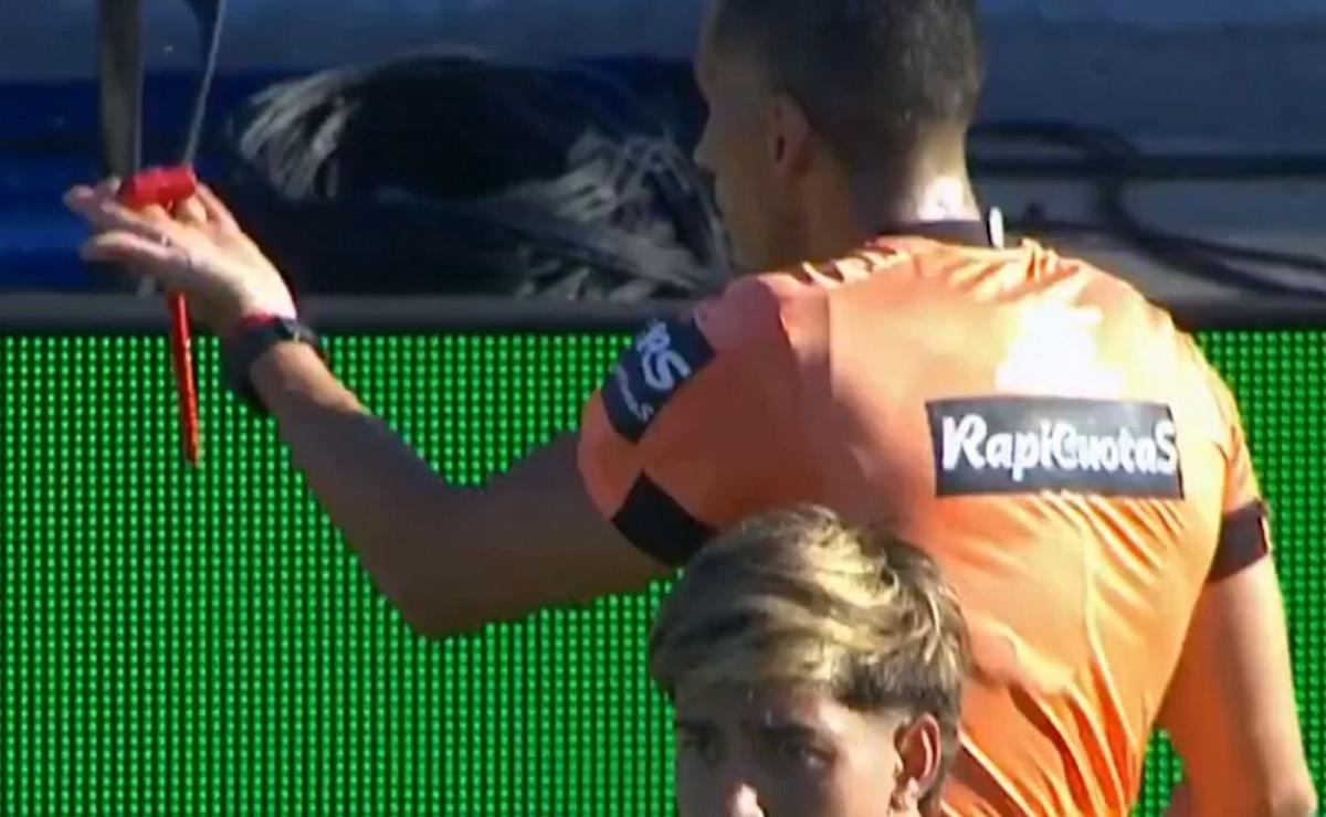El partido se detuvo debido a que el árbitro fue golpeado por un martillo lanzado desde la tribuna.