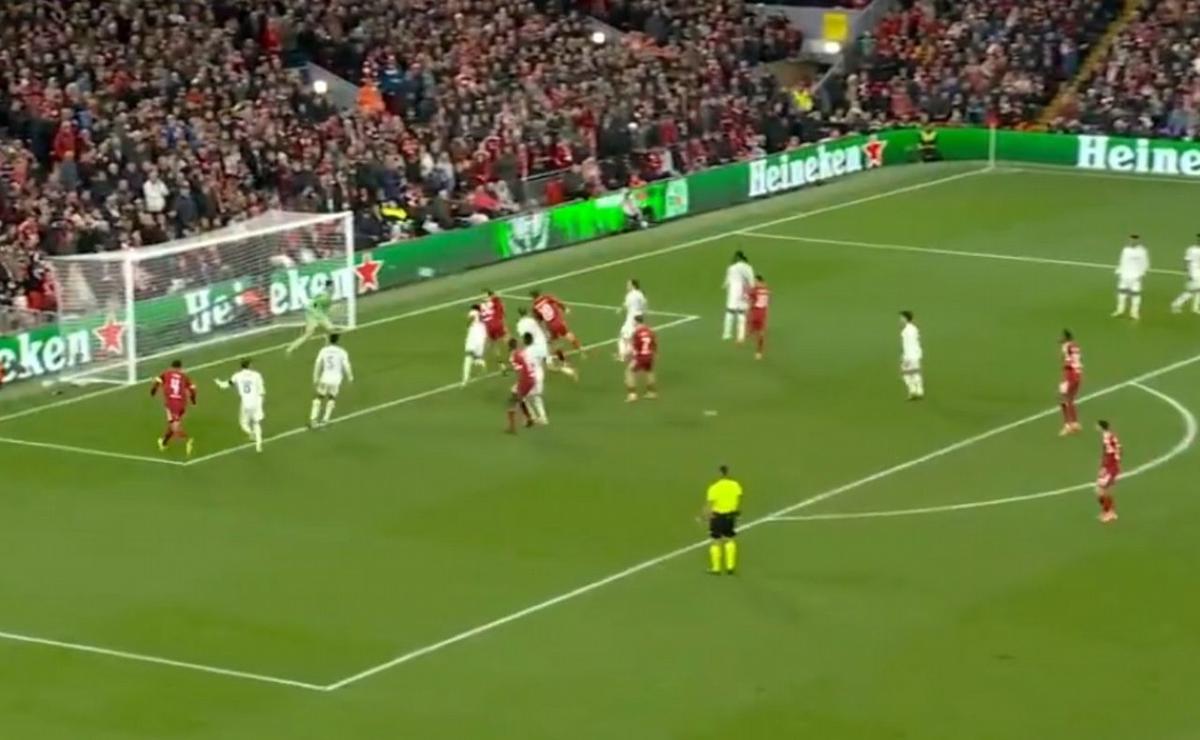 El cabezazo del campeón del mundo se metió por encima del arquero del equipo madrileño desatando la locura en Anfield.
