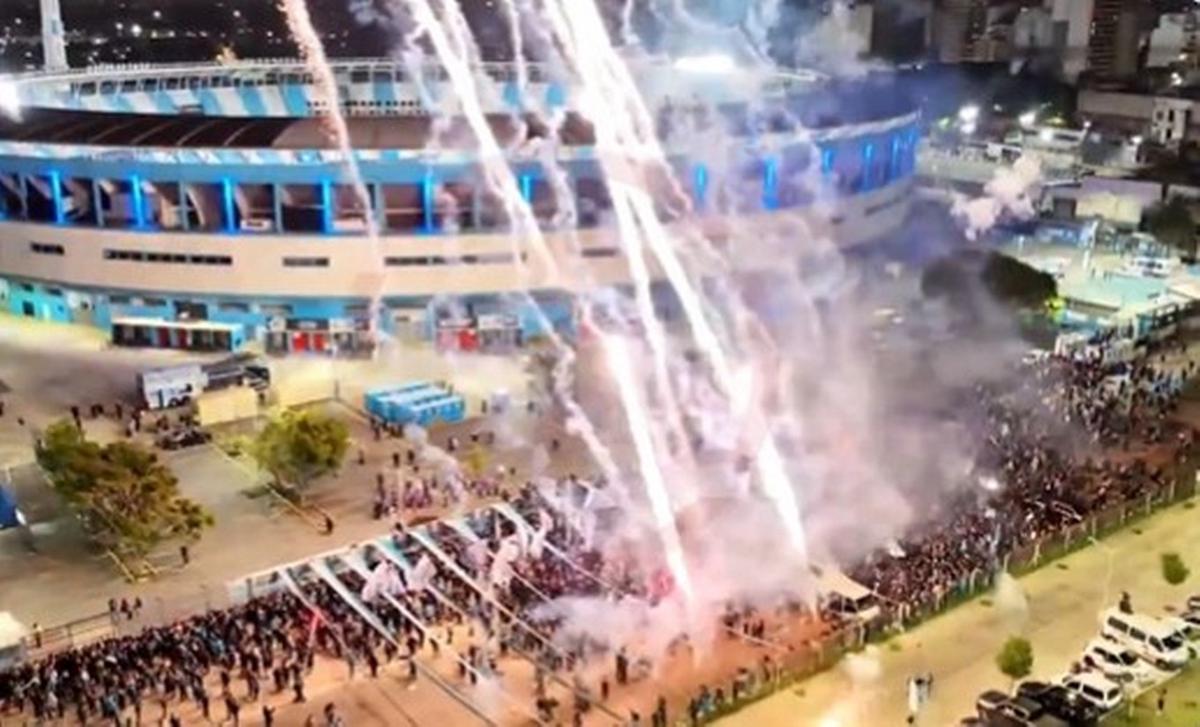 En la antesala del trascendental duelo, que puede ser histórico para "La Academia" (no llega a la final del certamen continental desde 1967), los hinchas recibieron al plantel con un banderazo inolvidable, fuegos artificiales y una eufórica ilusión.