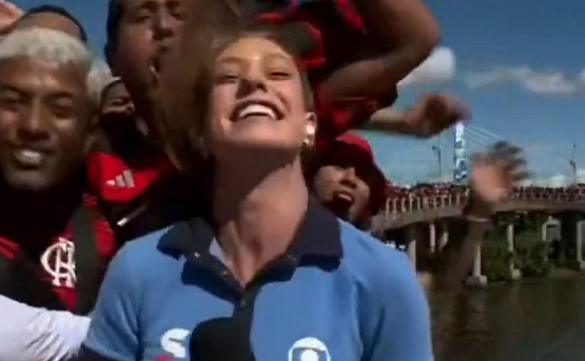 La periodista explicó: "Estaba transmitiendo en vivo para Globo y alguien me tiró del pelo. La primera vez, pensé que fue sin querer. Estamos acostumbrados a hacer estas cosas con los hinchas y a veces hay empujones, un alboroto, lo cual es normal".