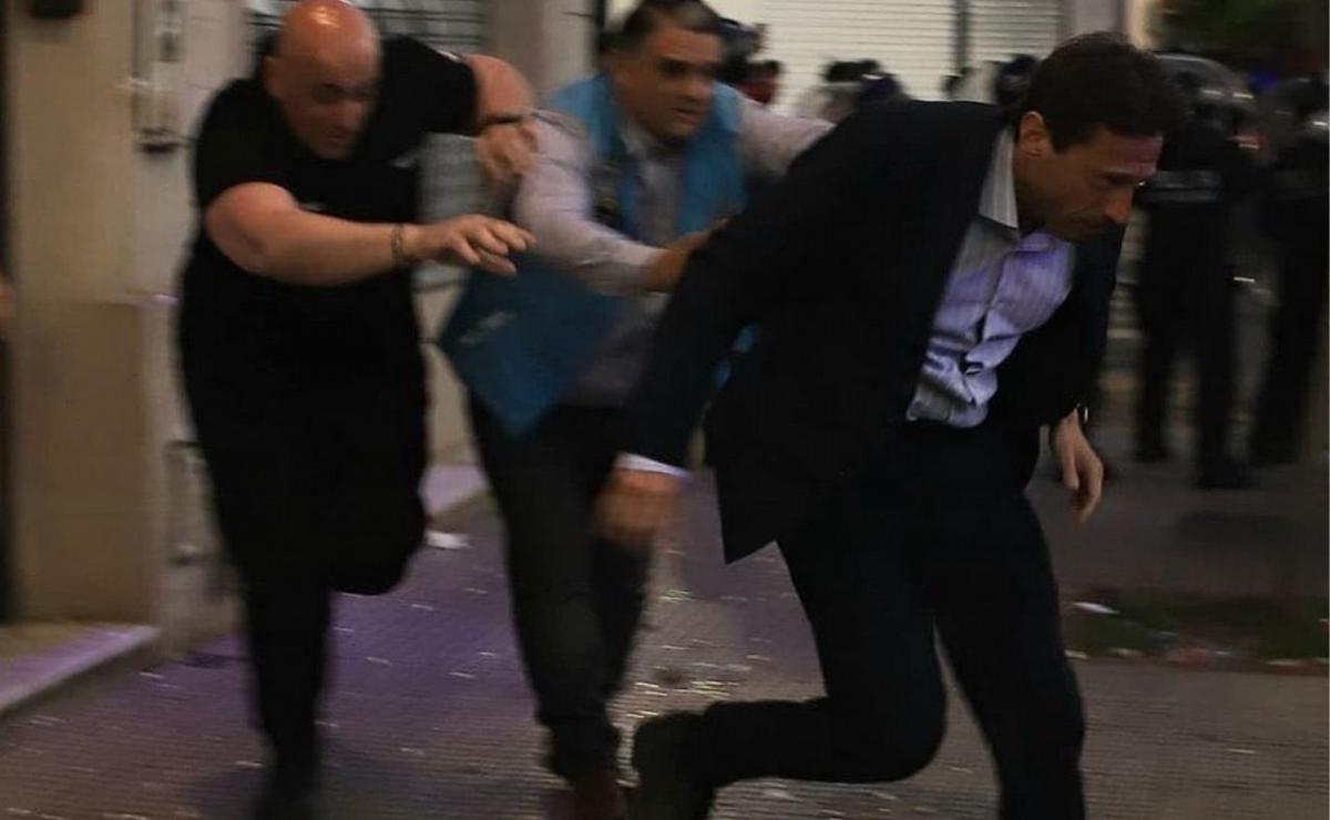 /Fin Código Embebido/Al salir, Marcelo Moretti corrió desde la puerta de la sede hasta un patrullero que lo esperaba para salir de allí.
