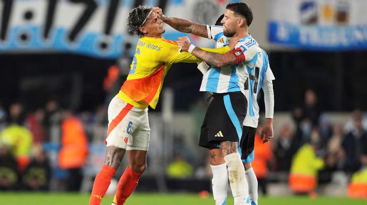Ríos y Otamendi tuvieron un fuerte cruce durante un partido entre las selecciones de Colombia y Argentina.