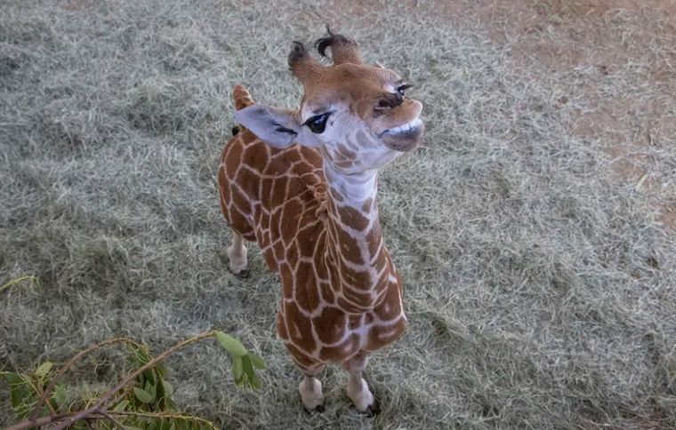 Msituni es una jirafa que nació el pasado 1 de febrero en el San Diego Zoo Safari Park de Escondido, al norte de San Diego con un problema motriz, su extremidad delantera se flexionaba al revés.