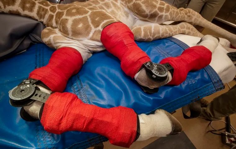 El animal medía 178 centímetros de altura, y cada vez crecía más. Ante esta situación recurrieron a Ara Mirzaian, un prestigioso ortopedista que lleva más de 30 años colocando aparatos ortopédicos para personas. “Fue bastante surrealista cuando me enteré por primera vez (...) Por supuesto, todo lo que hice fue conectarme a Internet y estudiar jirafas las 24 horas del día, los 7 días de la semana, hasta que llegamos aquí” aseguró el profesional a varios medios estadounidenses.