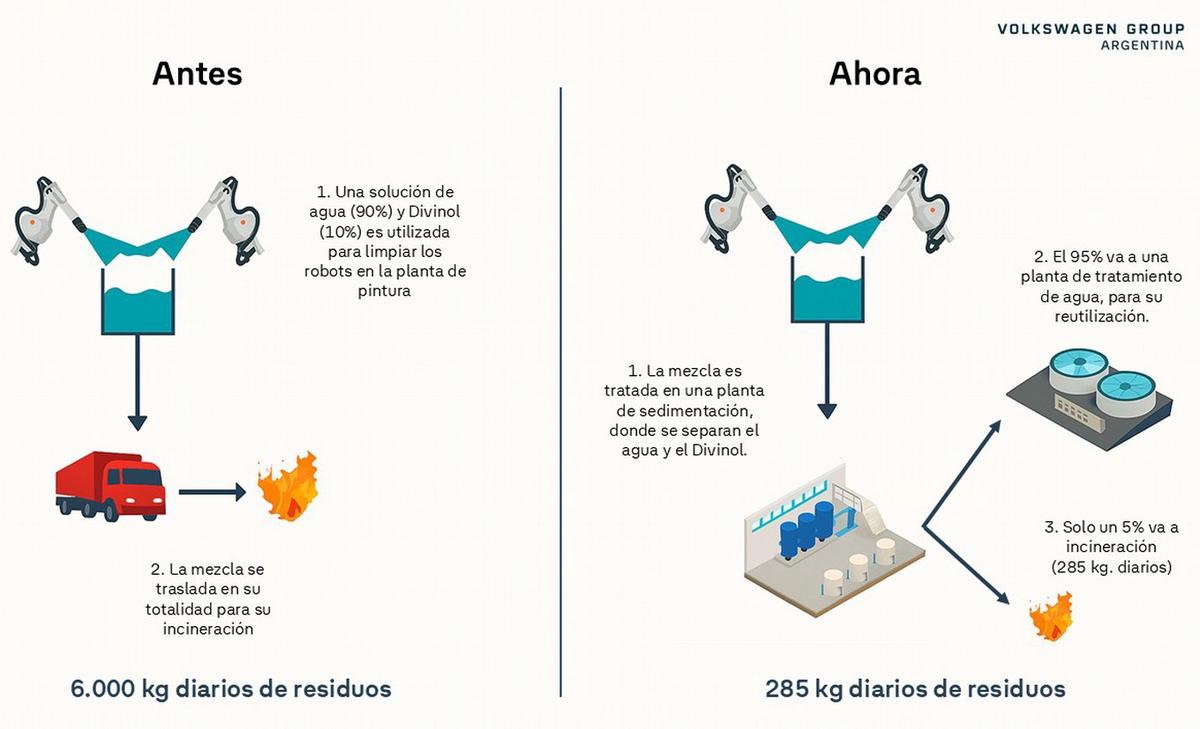 En el Centro Industrial Pacheco, Volkswagen puso en marcha una innovadora solución para el tratamiento del efluente generado en el proceso de limpieza de robots en la nueva planta de Pintura, el cual contiene una solución de agua con un solvente base agua.