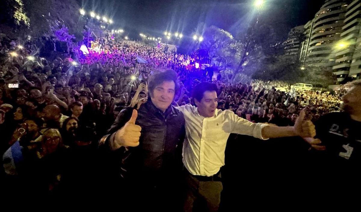 /Fin Código Embebido/El jefe de Estado estuvo acompañado, entre otros dirigentes, por el primer candidato a diputado nacional de La Libertad Avanza (LLA) por la provincia, Gonzalo Roca, y por el jefe del bloque libertario en la Cámara baja, Gabriel Bornoroni.