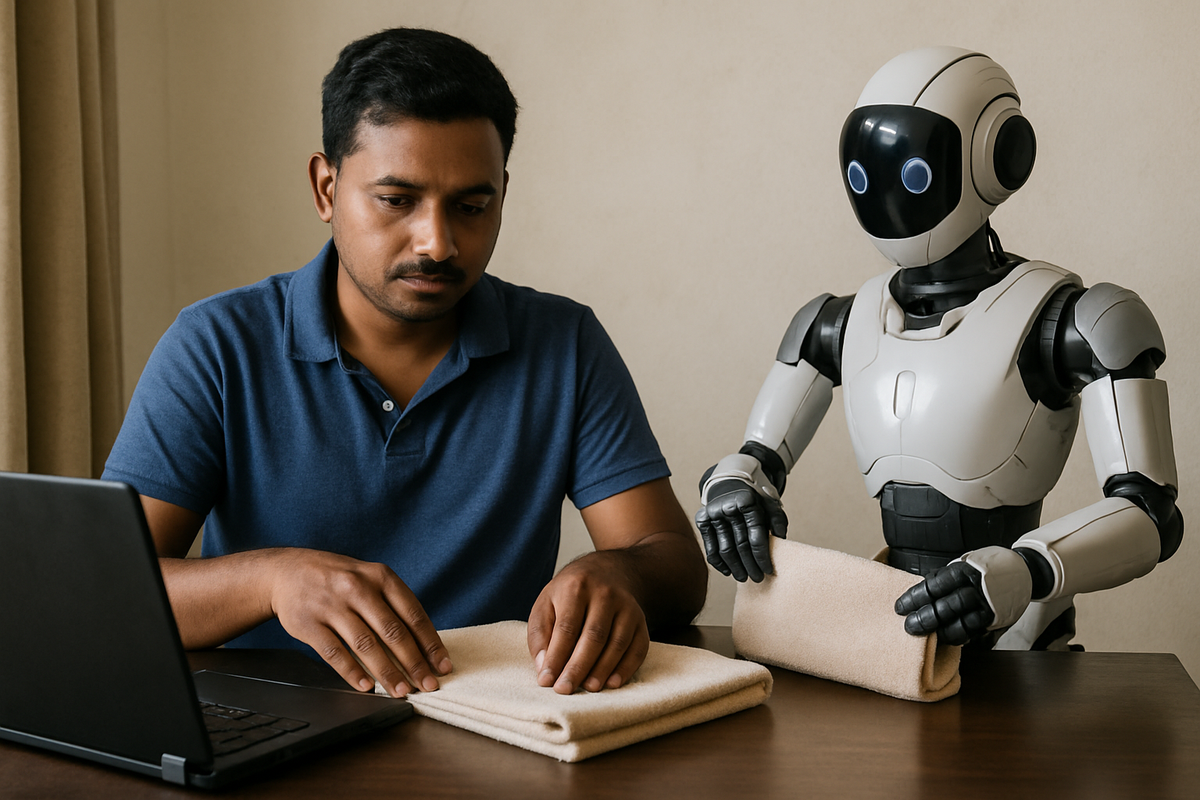 En una ciudad industrial del sur de India, Naveen Kumar, de 28 años, se prepara para su jornada laboral: debe doblar toallas de mano cientos de veces, con la mayor precisión posible. Sin embargo, no trabaja en un hotel, sino para una startup que crea datos físicos utilizados para entrenar a la IA.