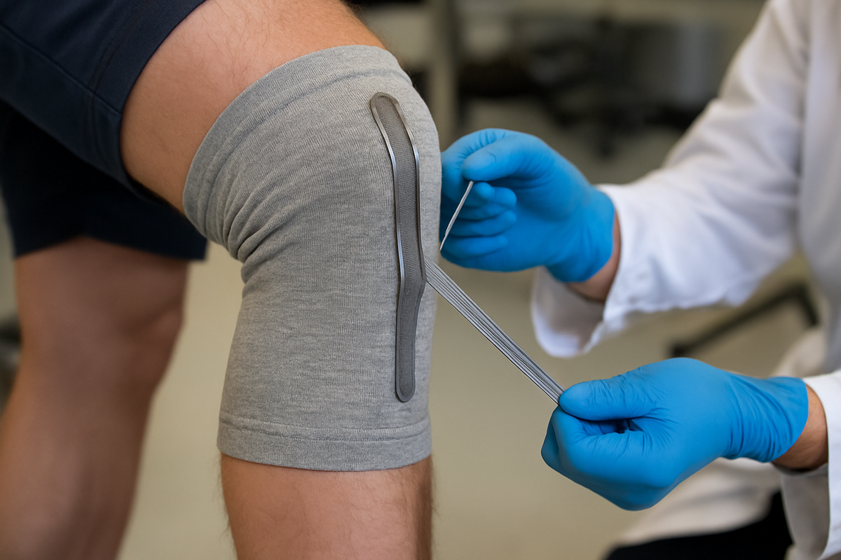 El equipo utilizó su técnica, publicada en Nature Electronics, para construir una rodillera inteligente que puede monitorear los movimientos y la función articular de un usuario durante la actividad.
