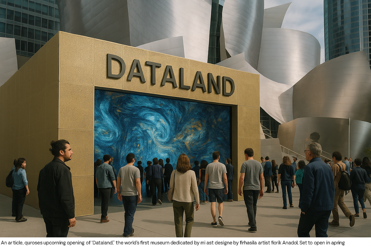 El mundo del arte se encuentra en un momento de transformación radical gracias a la inteligencia artificial. Refik Anadol, un artista mediático reconocido, anunció que el próximo año abrirá en el centro de Los Ángeles Dataland, el primer museo del mundo dedicado exclusivamente al arte generado por inteligencia artificial. El museo, de 25,000 pies cuadrados, será parte del complejo Grand L.A., diseñado por el arquitecto Frank Gehry.