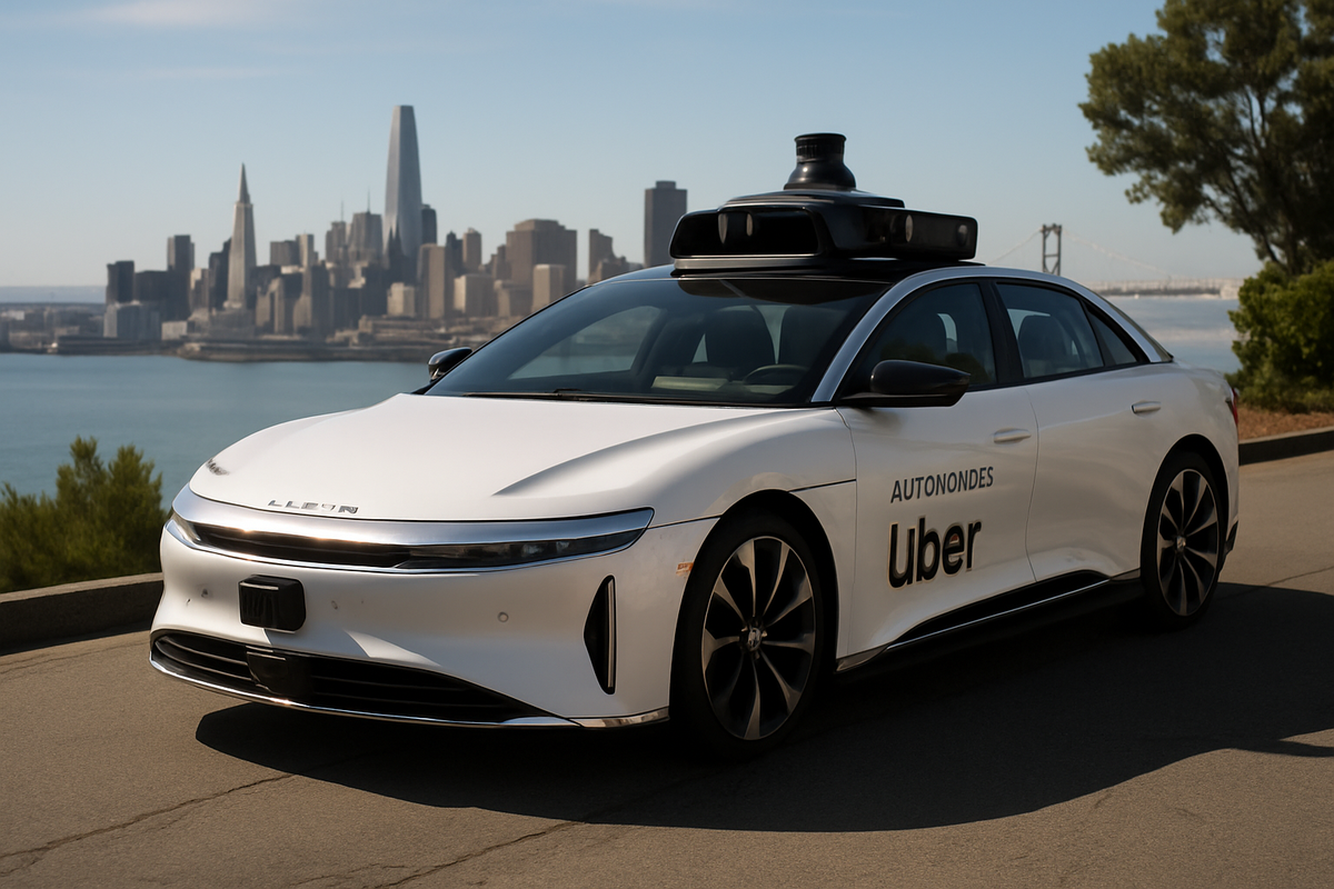 Uber anunció que el área de la Bahía de San Francisco será el primer mercado para su taxi autónomo, que se espera lanzar a finales de 2026. Este vehículo, desarrollado en colaboración con Lucid y Nuro Inc., se basa en el modelo Lucid Gravity SUV.