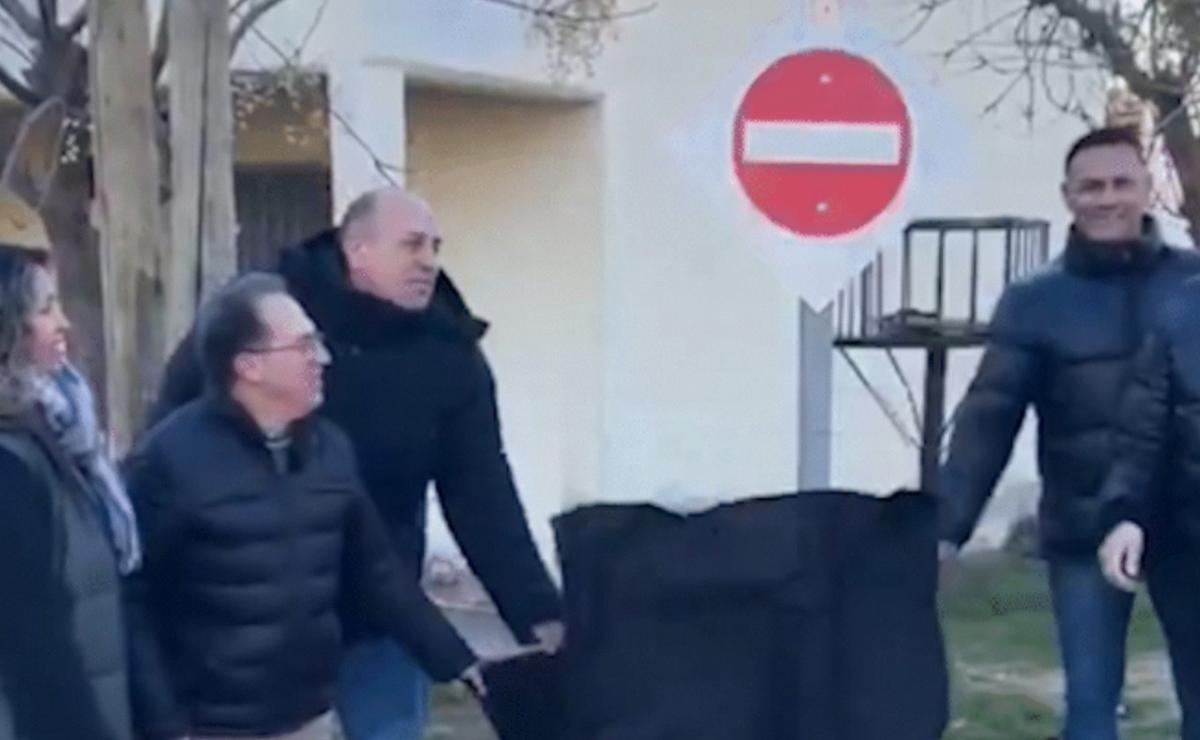 La ceremonia, encabezada por el intendente Luis Bertolini, incluyó funcionarios, concejales y seguidores del político. El evento fue criticado por la necesidad de un acto oficial para la instalación de una señal de tránsito.