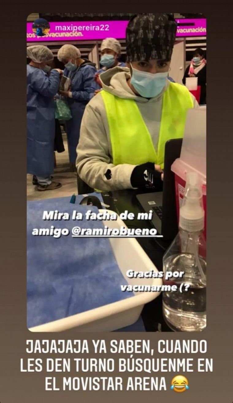 Ramiro Bueno, hijo de "El Potro", se encuentra trabajando en un centro de vacunación contra el Coronavirus. Quiso disimular su presencia usando, además del barbijo, un gorrito y uniformado con el chaleco amarillo.