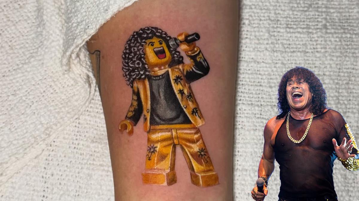 ¿Cómo es el diseño del tatuaje? El diseño tiene una estética que recuerda a los muñecos LEGO, con formas simples y colores definidos.