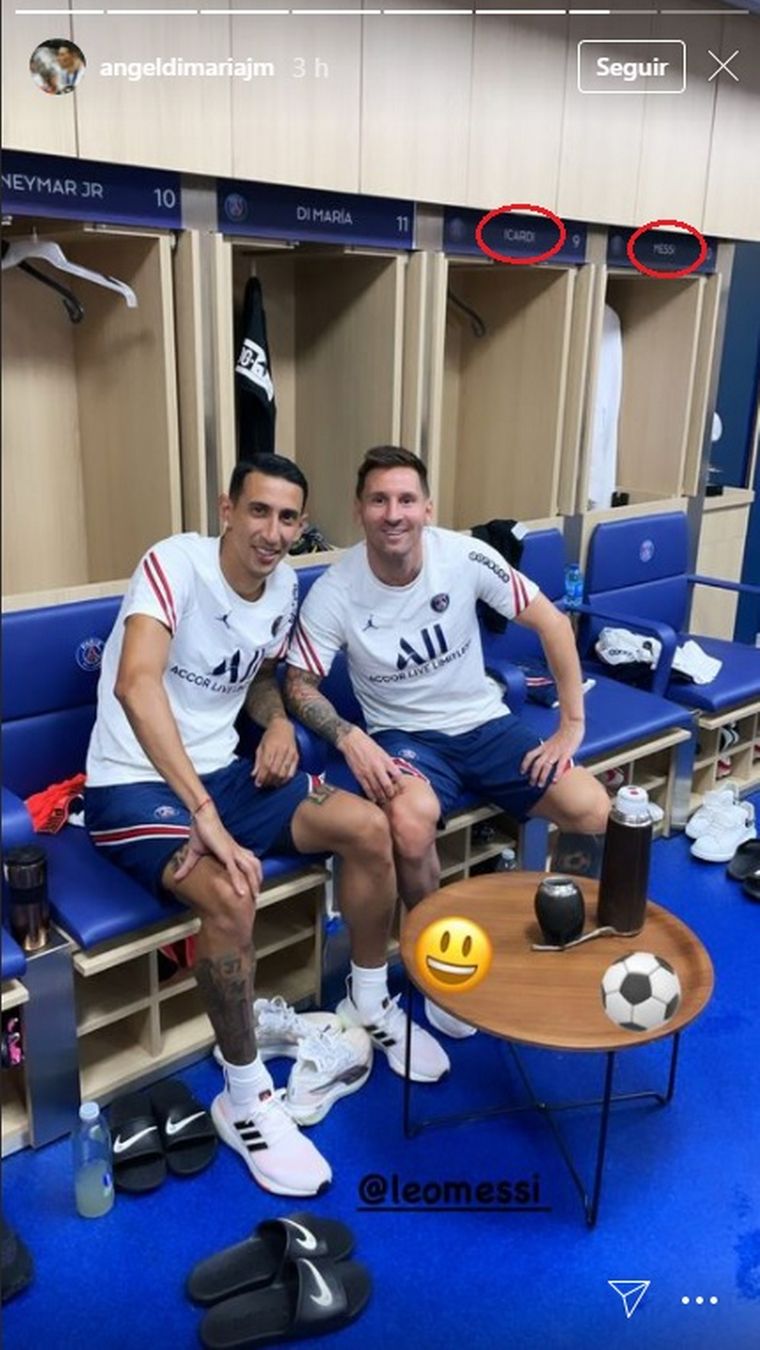 Sin embargo Di María publicó una foto en sus historias de Instagram con Messi en el vestuario donde un detalle asombró por los rumores de distancia relacional con Mauro. Es que al lado del casillero de Messi está, nada más ni nada menos, que el de Mauro Icardi, lo cual podría cambiar por la nueva cercanía que tienen.