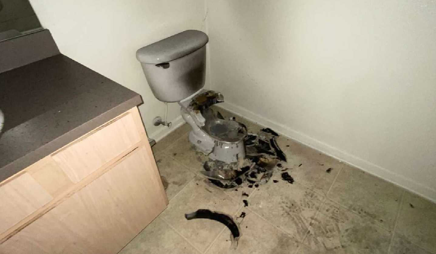 No sólo destruyó el sanitario sino que también quedaron manchadas por el calor del rayo en las paredes del mismo. El equipo de bomberos reconoció que nunca antes habían recibido una llamada como la que se dio.