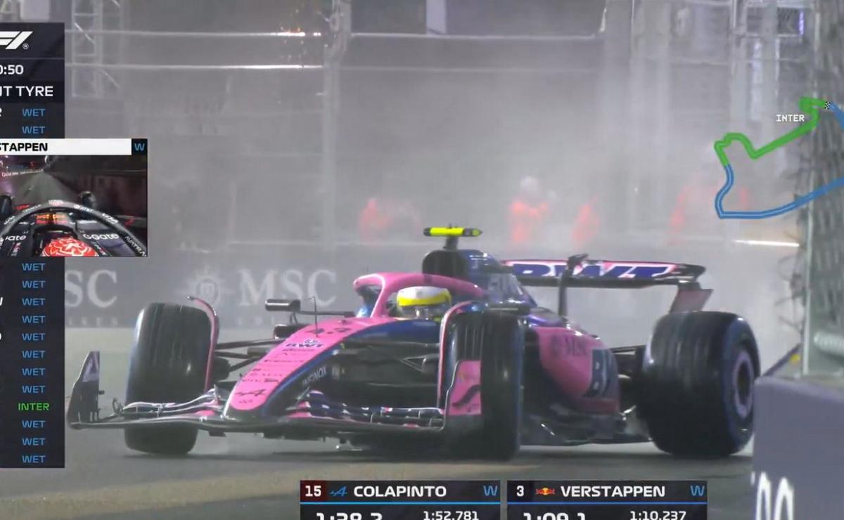 Cuando la pista comenzaba a mostrar una tenue línea seca, Colapinto se jugó todo en su último intento de la Q2. Sobre el final del giro, el Alpine A525 perdió estabilidad, obligándolo a dar un volantazo brusco para evitar el impacto contra las barreras.