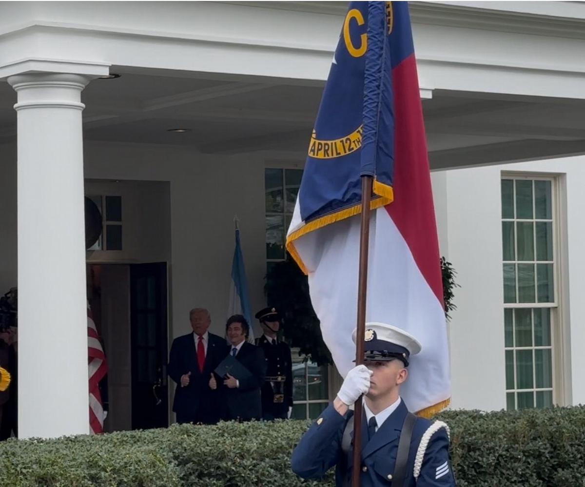 El mandatario hizo su ingreso a las 14.39 (hora de Argentina) y, tras firmar el libro de honor, comparte un almuerzo con Trump.