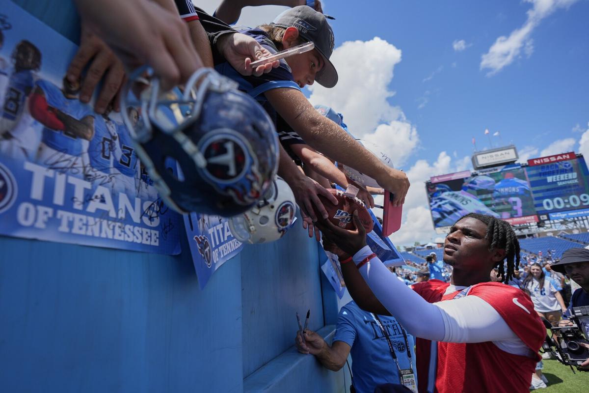 Incluso sin protecciones y sin permitir tackleadas, el quarterback novato de los Titans de Tennessee ofreció el sábado un espectáculo.