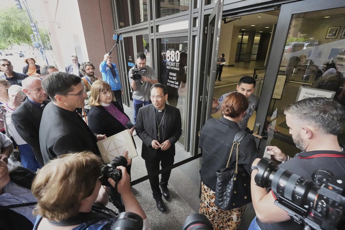Previo a la visita al tribunal, se celebró una misa en la catedral católica de San Diego, donde participaron obispos y otros líderes religiosos, entre ellos el obispo Michael Pham, la figura de mayor rango del grupo y uno de los primeros obispos nombrados por el papa León XIV tras su elección. Durante la misa, se ofrecieron oraciones por los refugiados y migrantes en conmemoración del Día Mundial del Refugiado. Pham es, él mismo, un refugiado que llegó a Estados Unidos sin acompañamiento desde Vietnam cuando era niño.