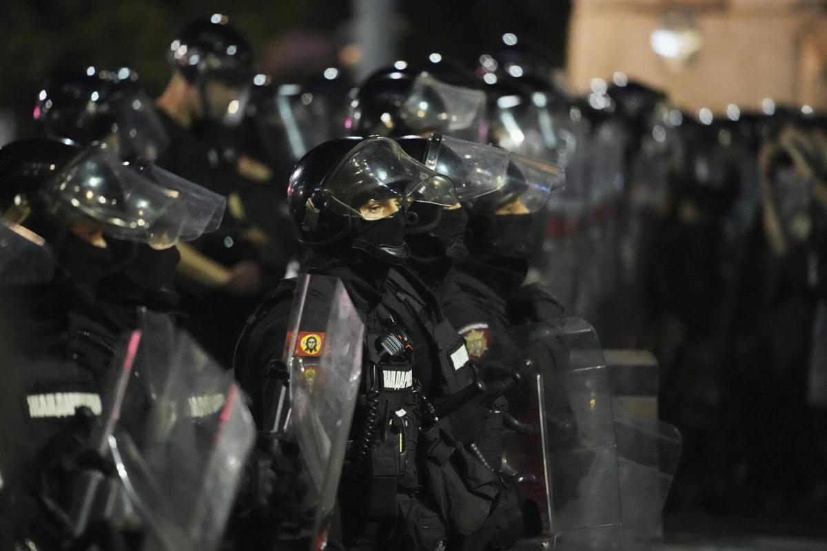 También estallaron escaramuzas en la capital, Belgrado, donde la policía antidisturbios utilizó gases lacrimógenos para dispersar a grupos de manifestantes. La policía antidisturbios formó un cordón alrededor de un campamento improvisado de leales a Vucic frente al edificio de la presidencia en el centro de la ciudad.