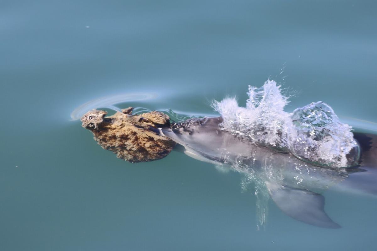 Usando la esponja para protegerse de las rocas afiladas, los delfines nadaron con la punta del hocico cubierta y removieron el fondo de los canales arenosos para detectar la presencia de algunos peces para alimentarse.