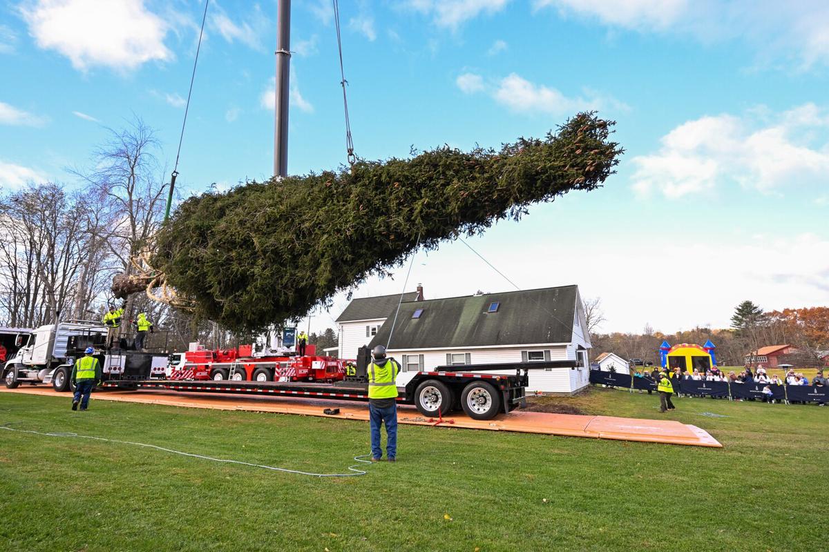 El abeto noruego de 23 metros (75 pies) de altura fue talado el jueves por la mañana en East Greenbush, un suburbio de Albany ubicado a unos 240 kilómetros (150 millas) al norte de Manhattan.