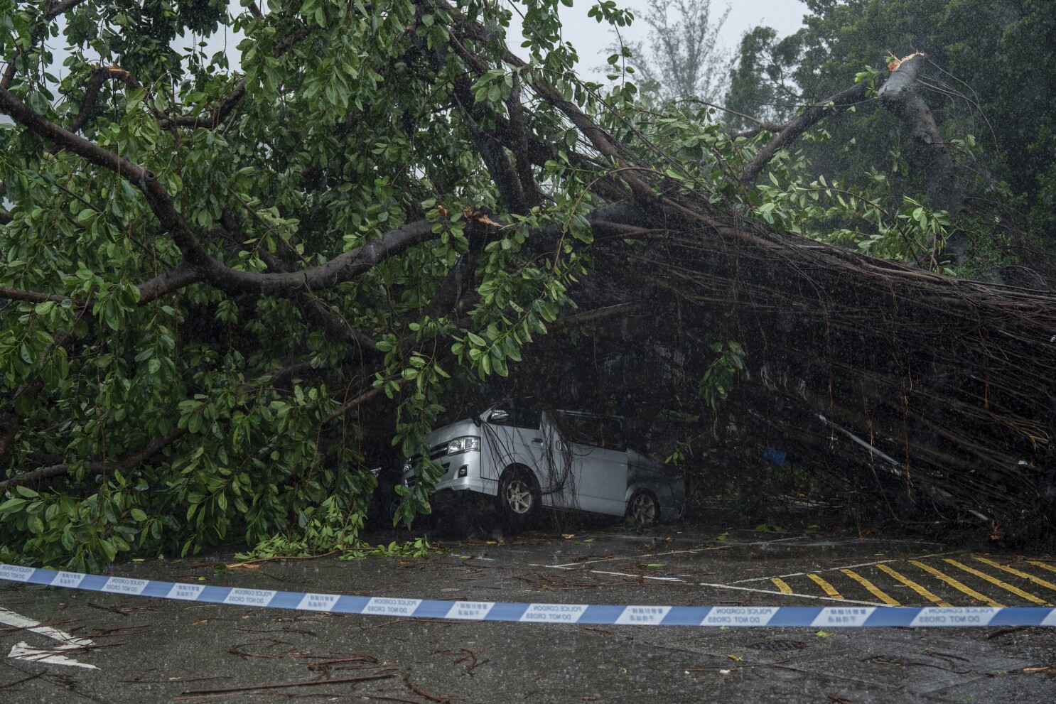 Los fuertes vientos derribaron árboles en Zhuhai y otras ciudades de la costa sur de China. En Hong Kong, los vehículos zigzaguearon entre las ramas esparcidas en las calles. El gobierno dijo que había recibido más de 450 reportes de árboles caídos y que 26 personas buscaron tratamiento médico en hospitales públicos. Un comunicado de prensa no proporcionó detalles sobre las lesiones.