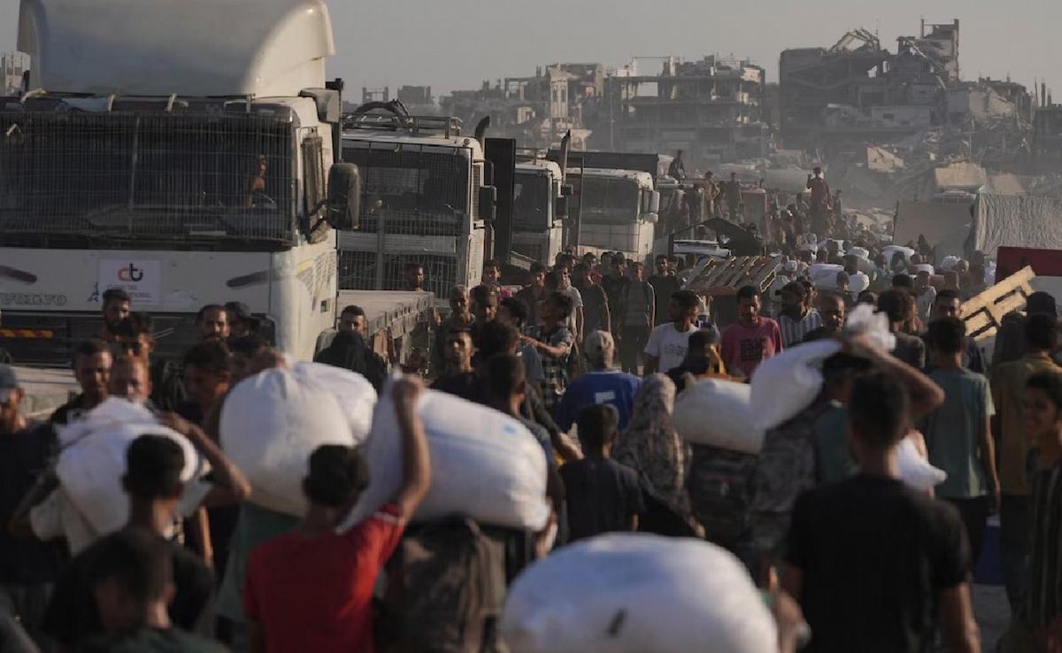 Un video filmado esa semana mostró cómo dos camiones que ingresaban al sur de Gaza fueron desbordados por multitudes. Jóvenes trepaban a los techos de las cabinas y colgaban de los costados mientras los vehículos avanzaban lentamente.