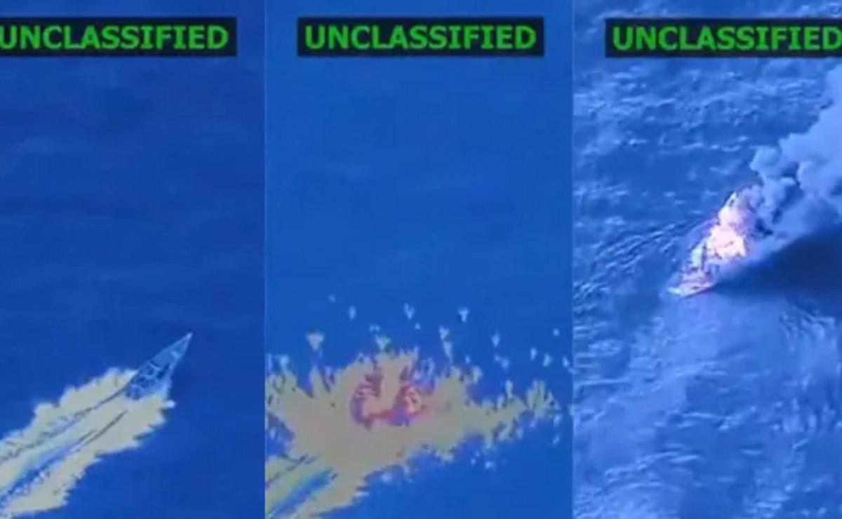 El Pentágono divulgó un video que muestra a la lancha navegando en mar abierto hasta que es alcanzada por una explosión que la envuelve en fuego y humo. La embarcación quedó en llamas en la superficie, mientras los restos ardían en medio del mar Caribe.