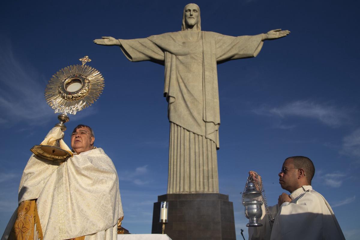 Antes de que llegaran los primeros turistas, el cardenal Orani João Tempesta lideró el ritual al amanecer en el mirador del que se puede observar la Bahía de Guanabara y el famoso Pan de Azúcar.