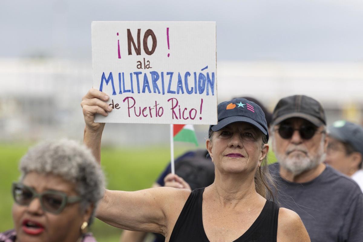 El domingo, decenas de personas se reunieron en la base de la Guardia Nacional en Carolina para denunciar el aumento de la presencia militar estadounidense en la isla.