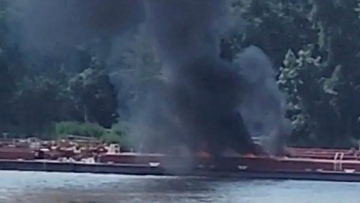 Un video proporcionado a KMOV-TV por un testigo mostró una columna de humo negro elevándose desde la barcaza.