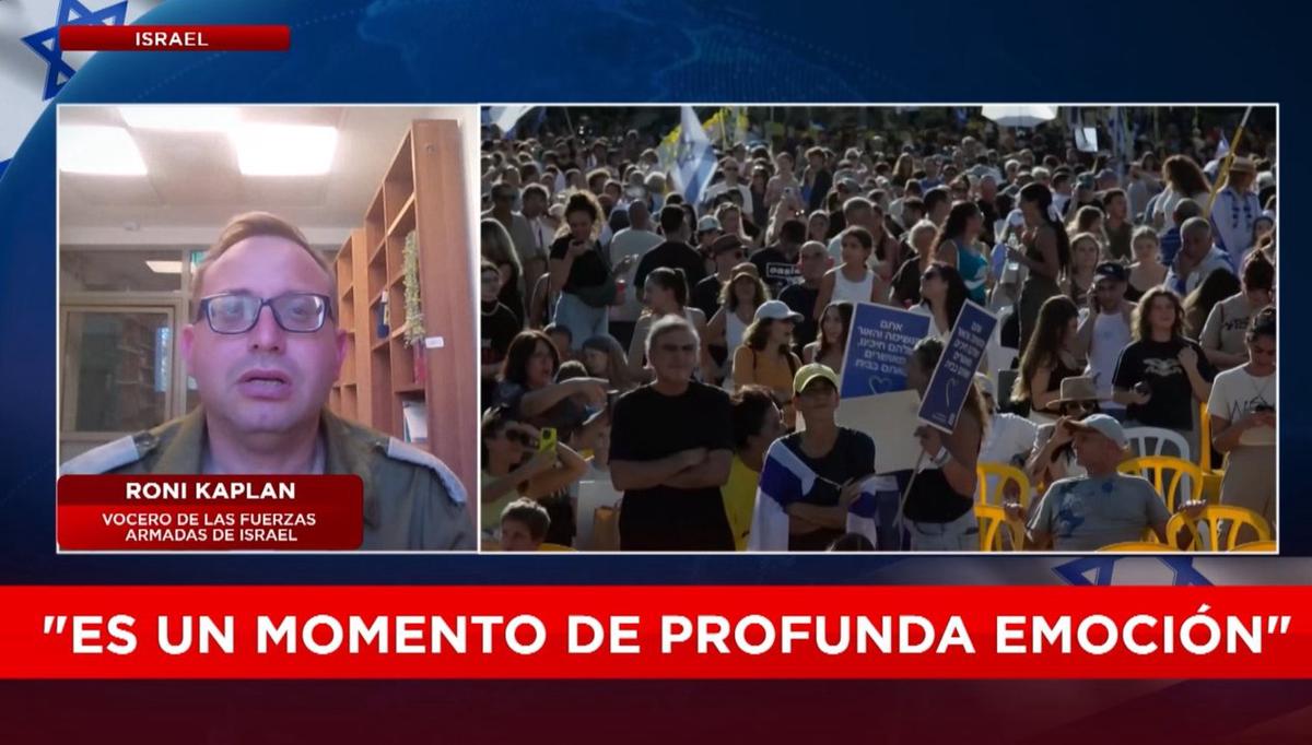 "Mientras celebramos, también recordamos que la misión aun no está concluida. Nos esperan momentos difíciles y dolorosos con el retorno de los rehenes caídos, porque ahora volvieron los 20 rehenes con vida", subrayó Roni Kaplan, vocero de las Fuerzas Armadas de Israel, en declaraciones a la cadena latinoamericana de noticias DNEWS.