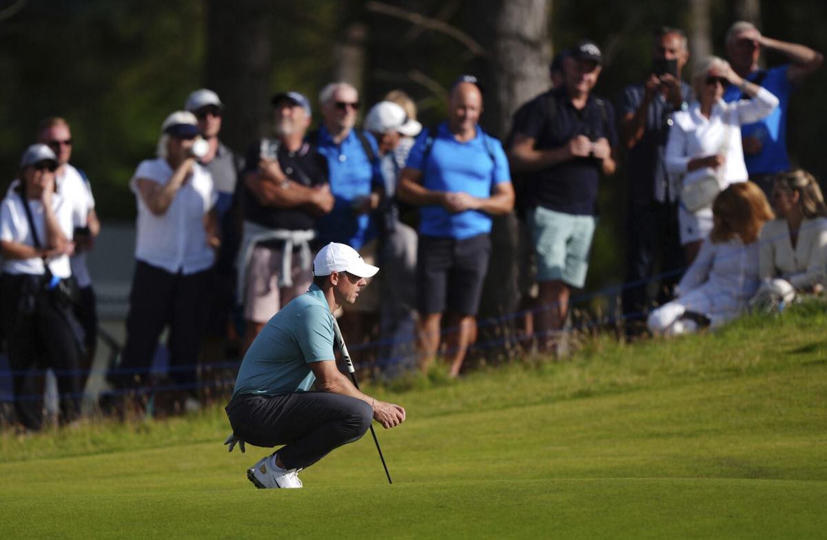 Un golpe desde el tee aterrizó justo antes de un muro en el hoyo 5, obligándolo a jugar de lado hacia el fairway. Otro encontró un búnker en el 15. McIlroy intentó con un hierro nueve para superar un borde empinado y falló. Sacó la siguiente, golpeó un wedge que rodó por la parte trasera del green y embocó un putt de bogey de 25 pies para limitar el daño.