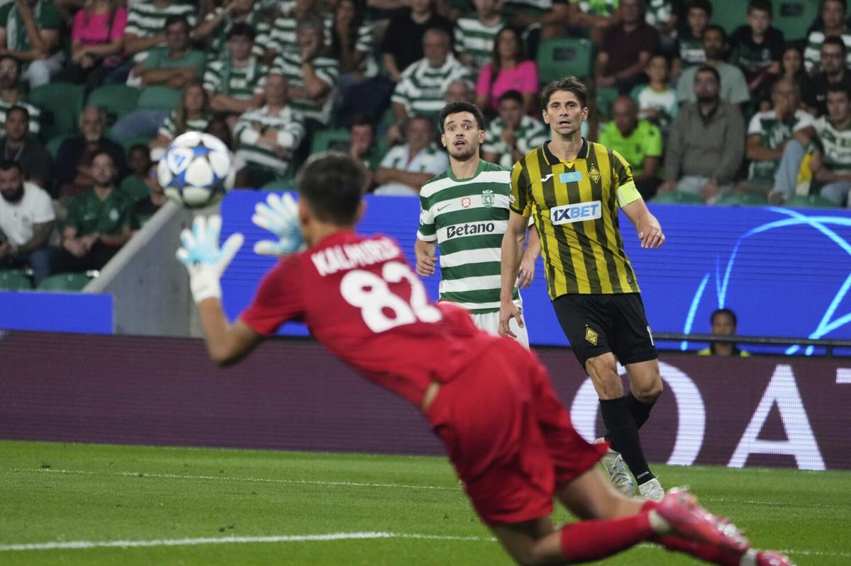 Kalmurza se destacó con otras atajadas, pero no pudo evitar una derrota por 4-1 ante el Sporting de Lisboa en lo que fue el debut para el club kazajo en la competición de clubes de élite de Europa.