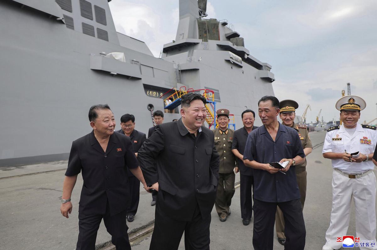 Durante la visita del lunes a Nampo, Kim también revisó los esfuerzos norcoreanos para completar un tercer destructor para octubre, dijo la ACNC. Mientras inspeccionaba el Choe Hyon, Kim expresó su satisfacción con el progreso de las pruebas de armas del buque de guerra y su sistema de operaciones integrado, diciendo que la modernización de la marina y el avance hacia capacidades nucleares están avanzando según lo planeado. Instruyó a los funcionarios para llevar a cabo pruebas de rendimiento en octubre, agregó la agencia.