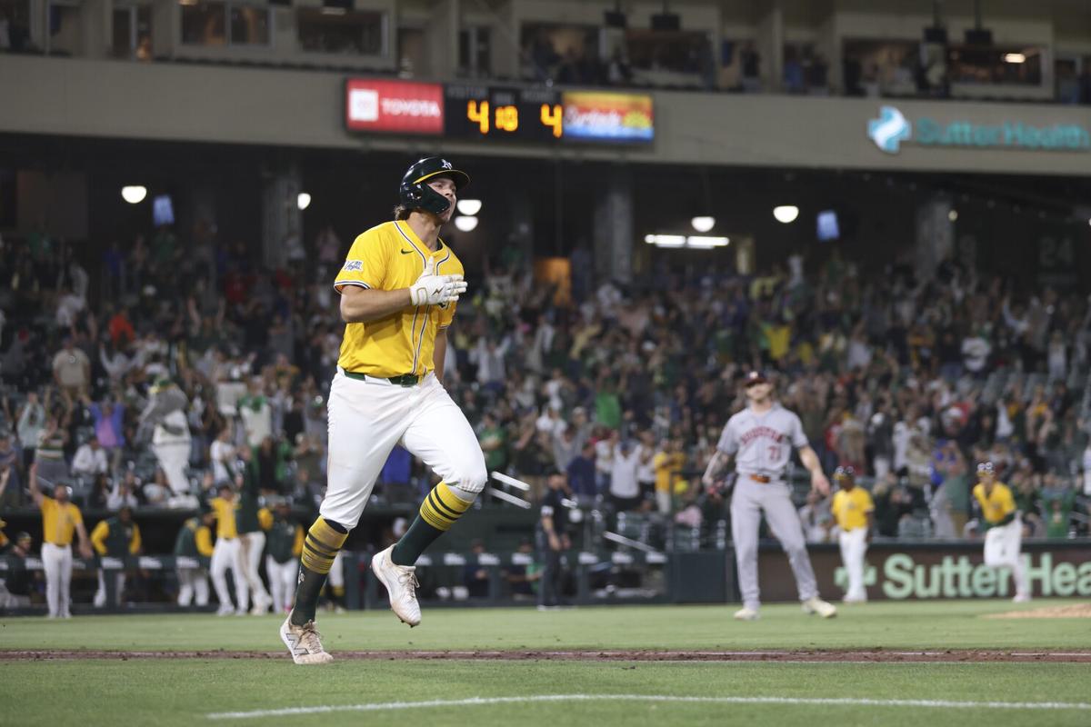 Tyler Soderstrom inició la parte baja de la décima como corredor automático en segunda base y avanzó a tercera debido a un lanzamiento descontrolado. Hader, que tenía un récord de 4-1, logró ponchar a Max Muncy, pero no pudo evitar que Kurtz conectara un sinker en una cuenta de 2-1.