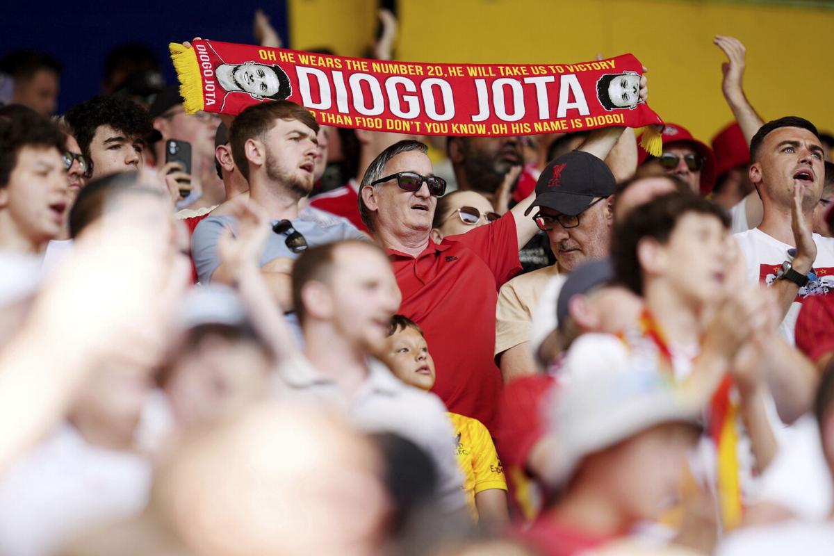 Los aficionados acudieron con banderas conmemorativas y corearon el nombre de Jota.